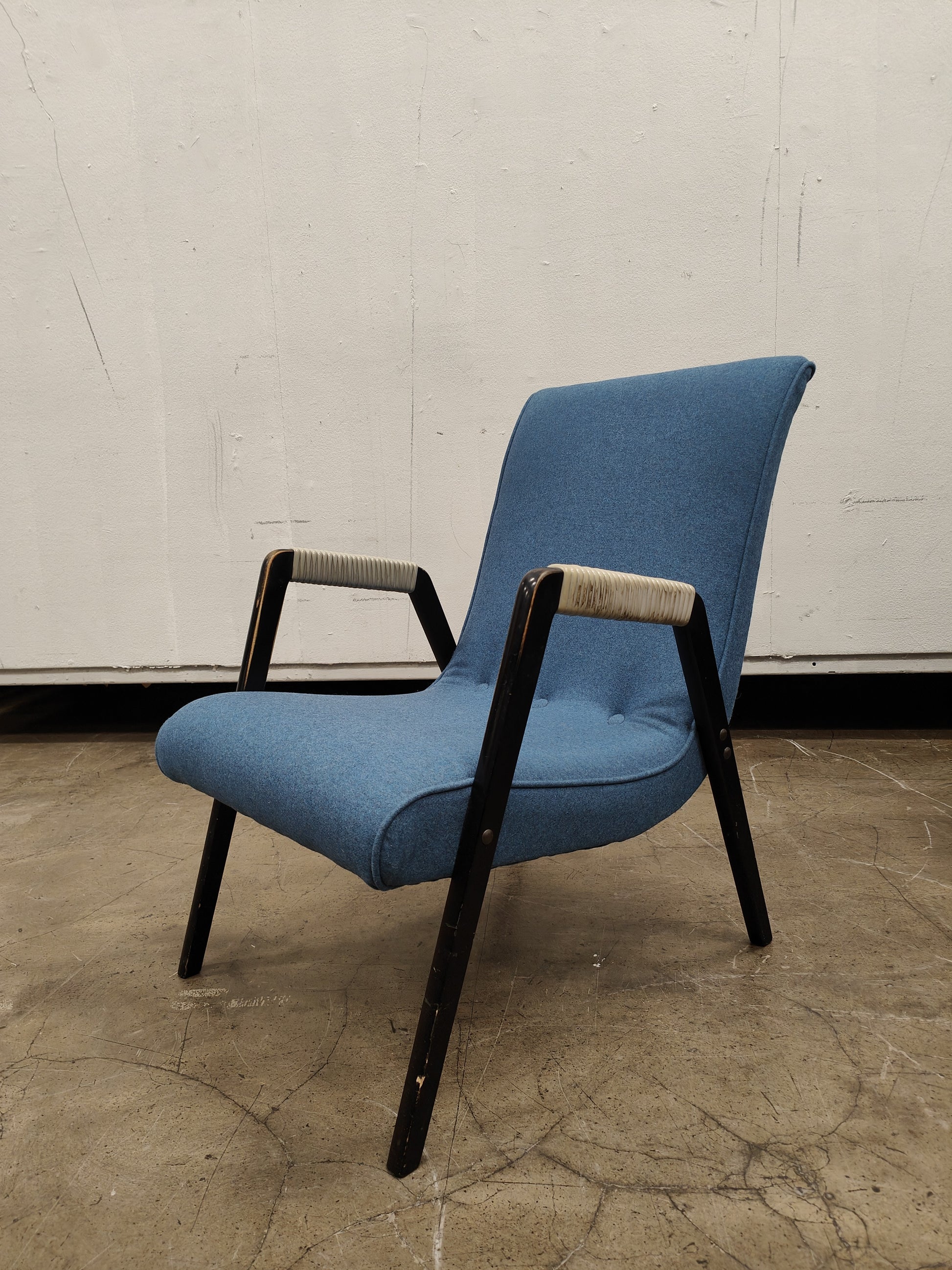 Kotimainen Lauritzonin villakankaalla verhoiltu nojatuoli