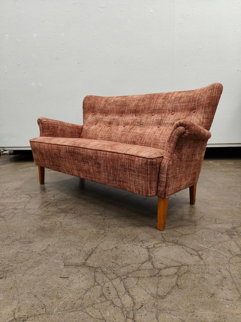 Muodokas täysin restauroitu, pystyjousitettu kotimainen sohva.