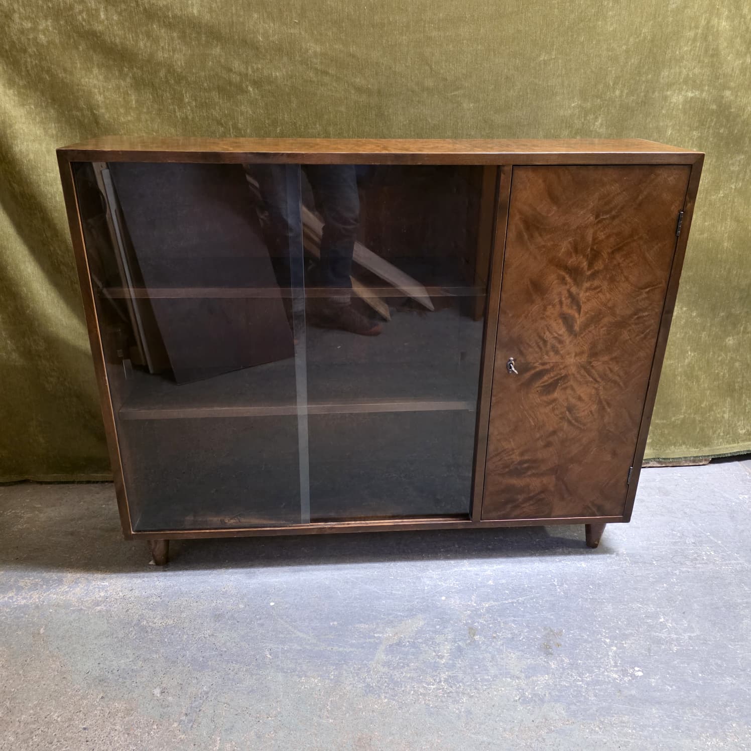 Kuvien mukainen Askon valmistama aukusti kirjakaappi, tummaksi petsattua loimukoivua.