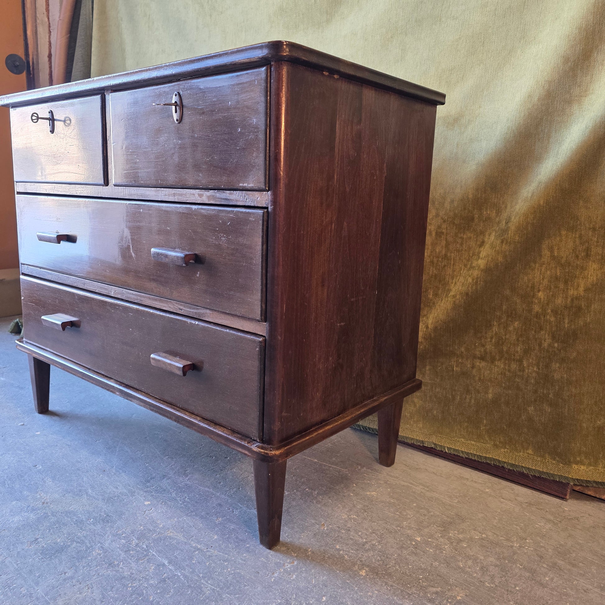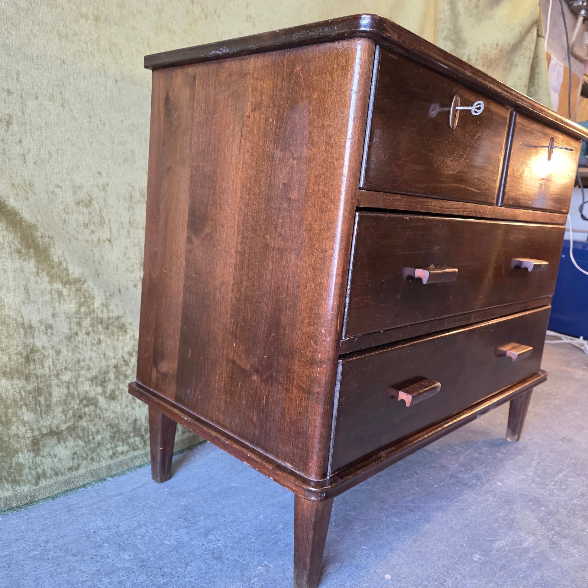 Myynnissä kuvien massiivikoivuinen lipasto 1930-luvulta.